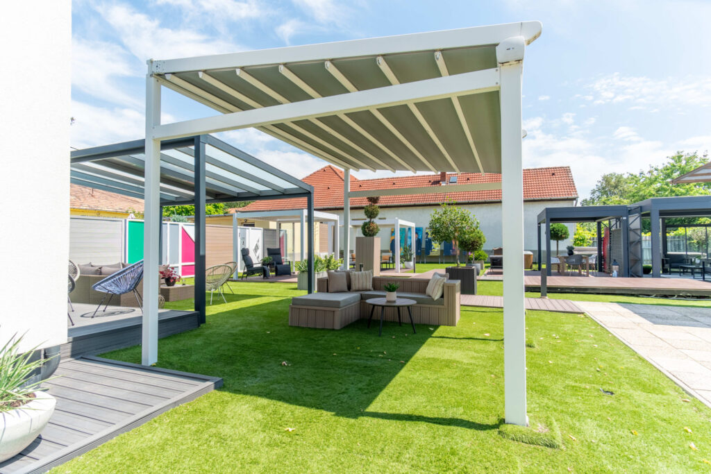 LUXURY pergola lamellái 75%-ban ELHÚZHATÓK, a köztes pozíciókban szabadon